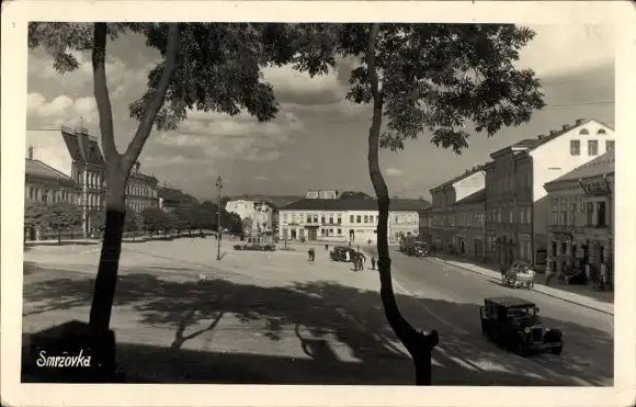 Ak Smržovka Morchenstern Region Reichenberg, Platz, Autos, Geschäfte