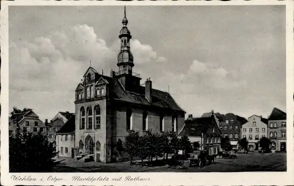 Ak Snamensk Wehlau Ostpreußen, Marktplatz, Rathaus
