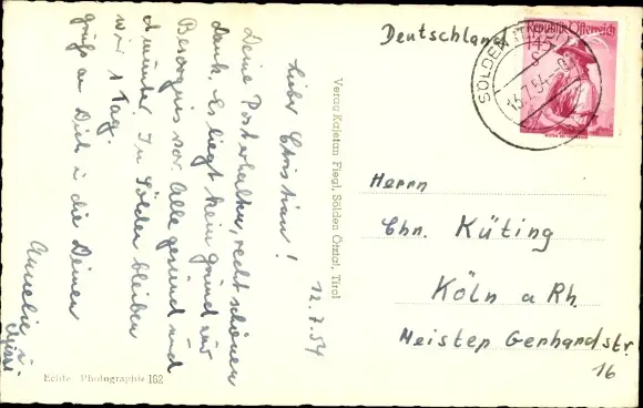 Zustand, siehe Scan, gelaufen, 1954 - ca 14 cm X 9 cm