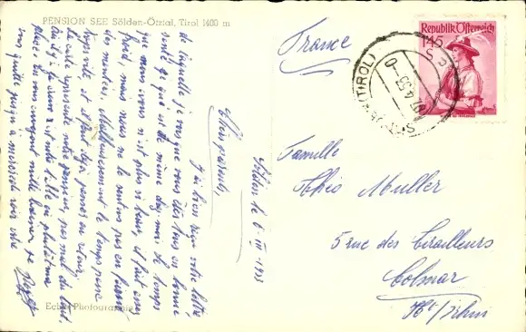 Zustand, siehe Scan, gelaufen, 1953 - ca 14 cm X 9 cm