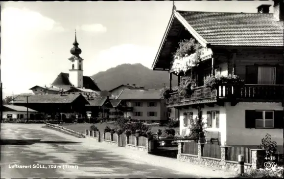 Ak Söll in Tirol, Straßenansicht mit Kirche