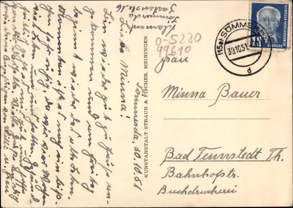 Zustand, siehe Scan, gelaufen, 1951 - ca 15 cm X 11 cm