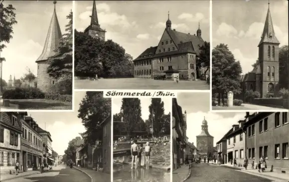 Ak Sömmerda in Thüringen, Kirche, Straßenpartie, Schwimmbad
