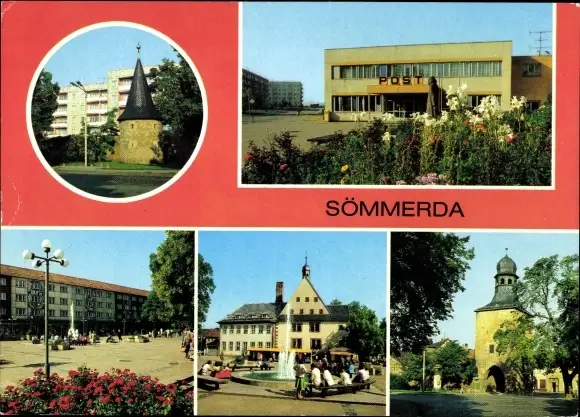 Ak Sömmerda in Thüringen, Stadtmauer, Post, Markt, Rathaus, Erfurter Tor