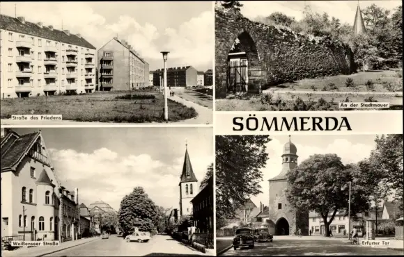 Ak Sömmerda in Thüringen, Straße des Friedens, an der Stadtmauer, Weißenseer Straße, Erfurter Tor
