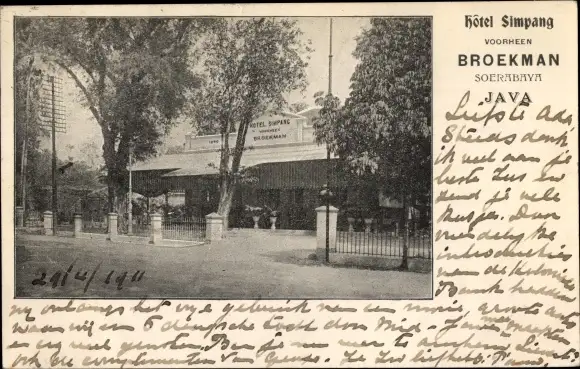 Ak Soerabaja Surabaya Java Indonesien, Hotel Simpang, vorheen Broekman