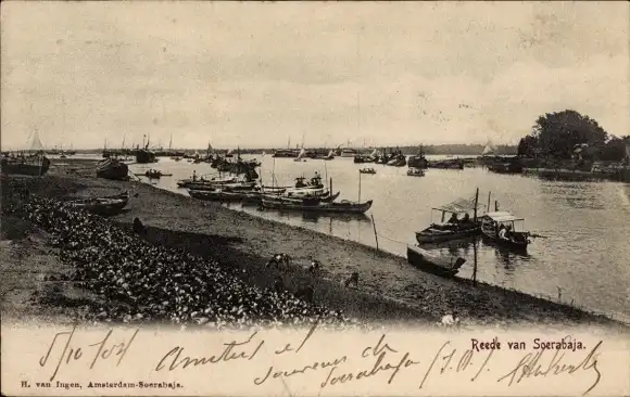 Ak Soerabaya Surabaya Java Indonesien, Reede, Uferpartie, Boote
