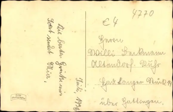 ungelaufen, datiert 1936, Rückseite beschrieben, sehr guter Zustand