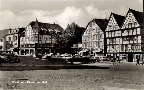 Ak Soest in Westfalen, Alte Häuser am Markt, Fachwerkhäuser