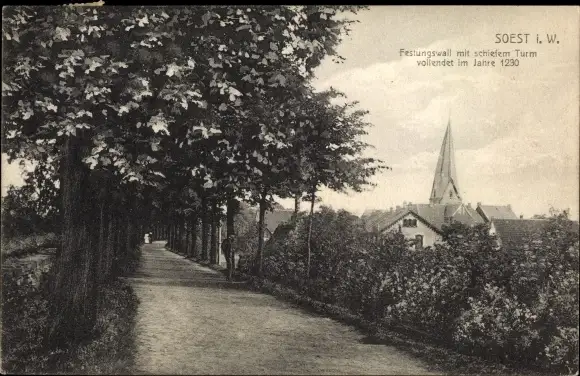 Ak Soest in Westfalen, Festungswall mit schiefem Turm
