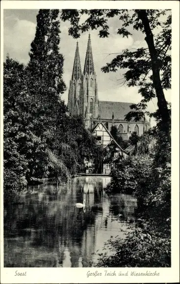 Ak Soest in Westfalen, Großer Teich und Wiesenkirche