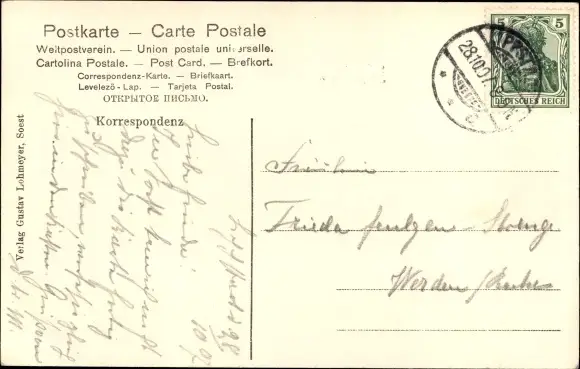 Zustand, siehe Scan, gelaufen, 1907 - ca 9 cm X 14 cm