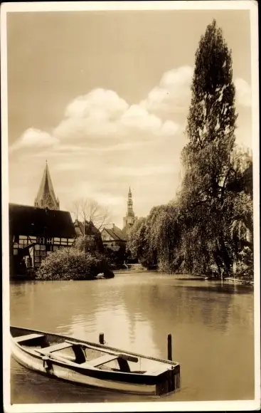 Ak Soest in Westfalen, Partie am großen Teich, Ruderboot