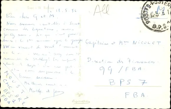 Zustand, siehe Scan, gelaufen, 1956 - ca 14 cm X 9 cm