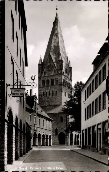 Ak Soest in Westfalen, Rathaus Straße und Dom