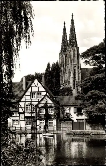 Ak Soest in Westfalen, großer Teich, Wiesenkirche