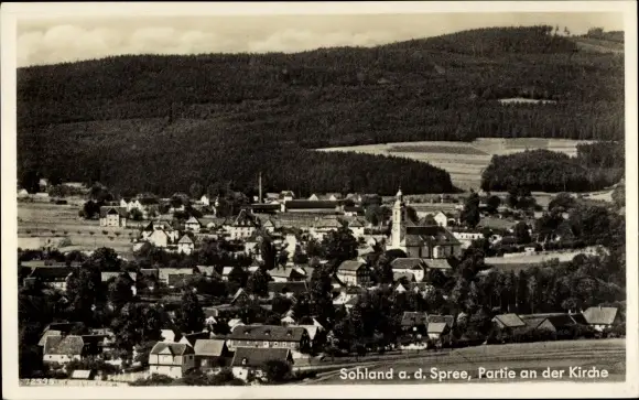 Ak Sohland an der Spree Sachsen, Panorama, Partie an der Kirche