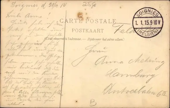 Zustand, siehe Scan, gelaufen, 1915 - ca 14 cm X 9 cm