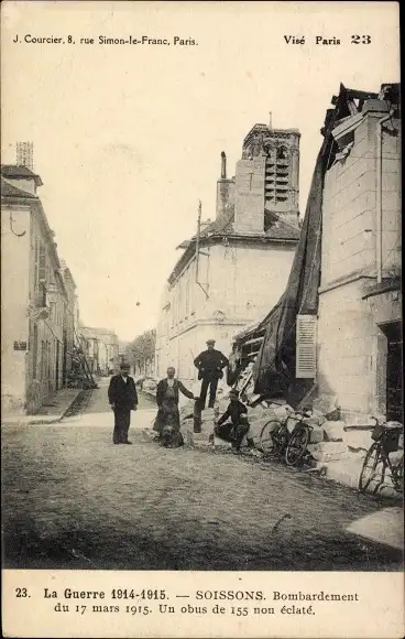Ak Soissons Aisne, Bombardierung vom 17. März 1915, eine 155-mm-Granate explodierte