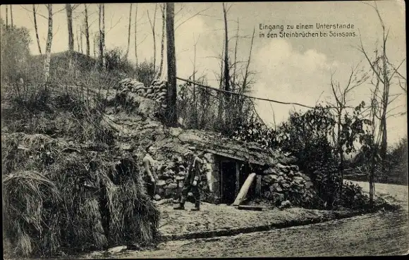 Ak Soissons Aisne, Eingang zu einem Unterstande in den Steinbrüchen