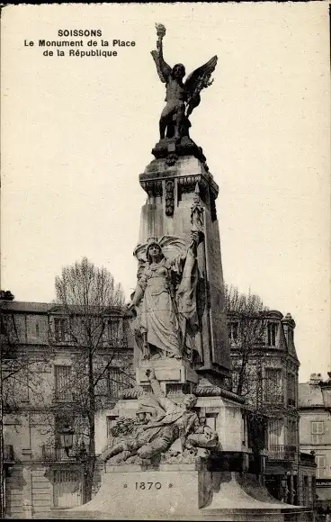 Ak Soissons Aisne, Le Monument de la Place de la Republique