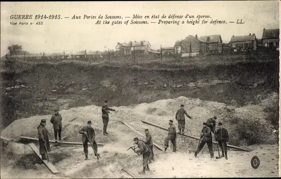 Ak Soissons Aisne, Mise en etat de defense d'un eperon, Guerre 1914-1915