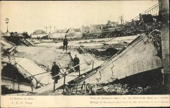 Ak Soissons Aisne, Pont de Soissons detruit par les Allemands dans leur retraite