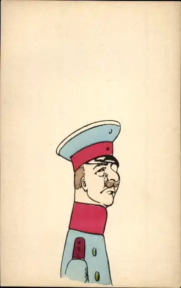 Ak Soldat in Uniform, Karikatur, Monokel