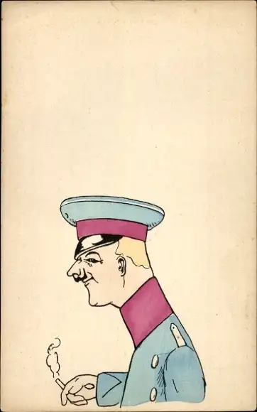 Ak Soldat in Uniform, Karikatur, Zigarette