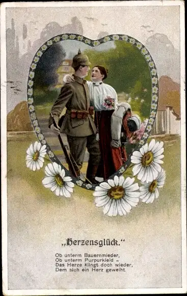 Ak Soldat mit Frau, Liebespaar, Herzensglück, Margeriten