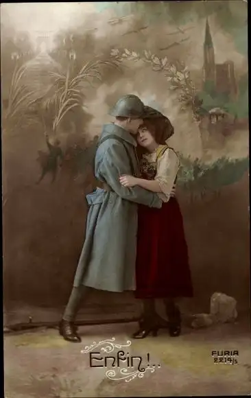 Ak Soldat und seine Frau, Elsässerin, Soldatenliebe