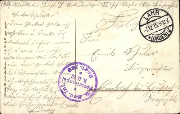 Zustand, siehe Scan, gelaufen, 1915 - ca 14 cm X 9 cm