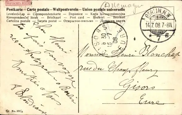 Zustand, siehe Scan, gelaufen, 1908 - ca 14 cm X 9 cm