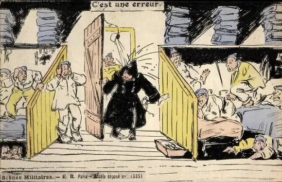 Ak Soldatenhumor Frankreich, Offizier bekommt Wasser über den Kopf