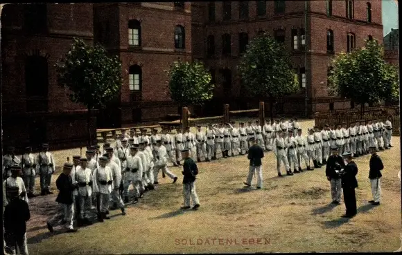 Ak Soldatenleben, Soldaten auf dem Exerzierplatz, Kasernenhof
