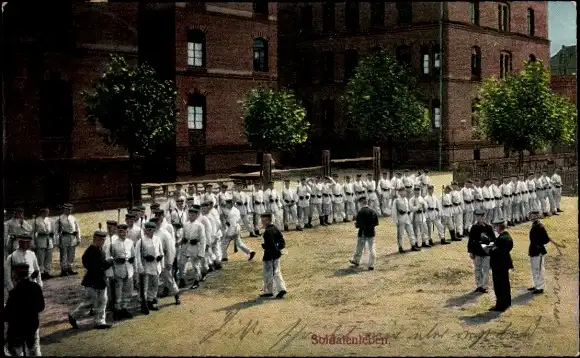 Ak Soldatenleben, Soldaten auf dem Exerzierplatz, Kasernenhof