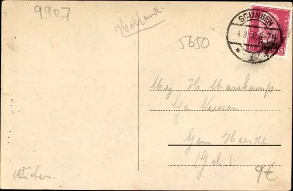 gelaufen 1930, Eckknicke, Einriss rechts, sonst guter Zustand