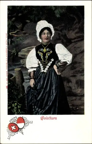 Ak Solothurn Schweiz, Frau in Volkstracht, Wappen