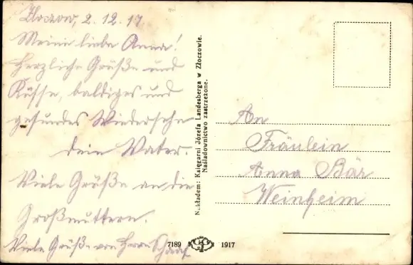 Zustand, siehe Scan, ungelaufen, 1917 - ca 14 cm X 9 cm