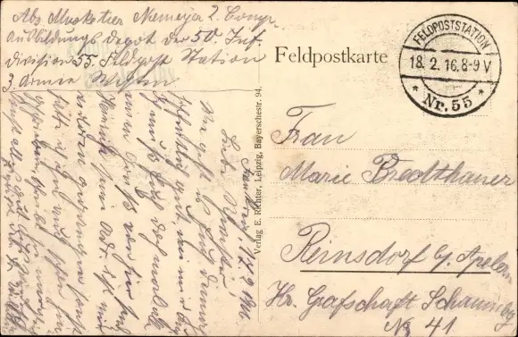 Zustand, siehe Scan, gelaufen, 1916 - ca 14 cm X 9 cm