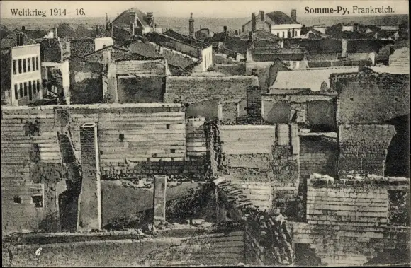 Ak Somme Py Sommepy Tahure Marne, Weltkrieg 1914-1916, Ruinen