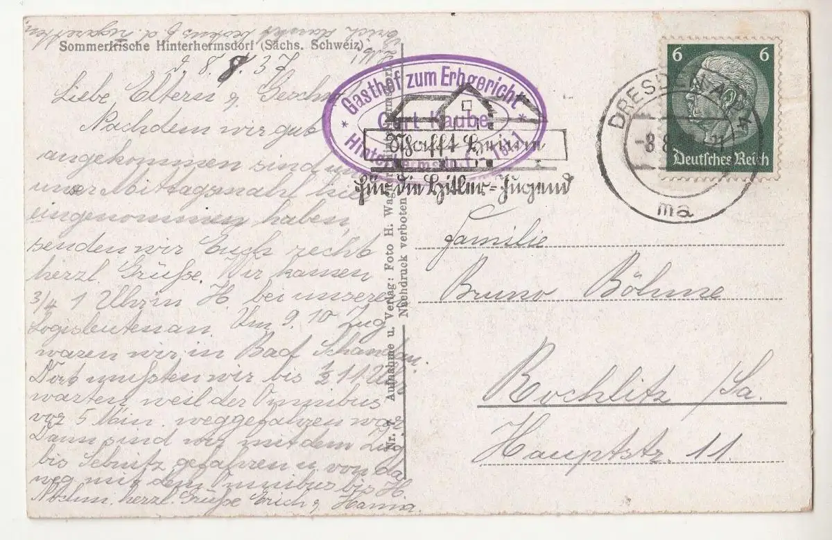 Originale, gelaufene ( 1937 ) Ansichtskarte.