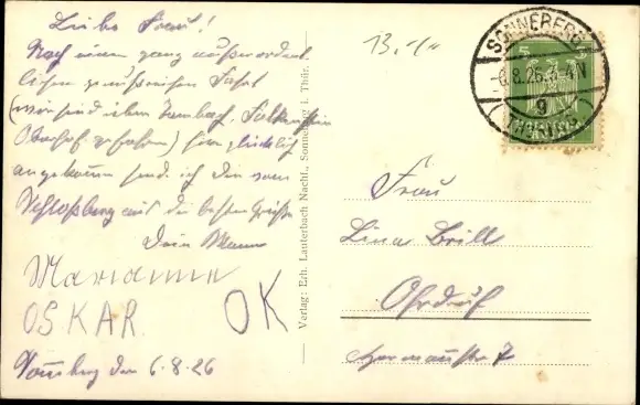 Zustand, siehe Scan, gelaufen, 1926 - ca 14 cm X 9 cm
