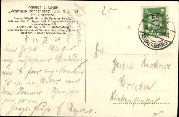 Ak Sonnenberg St. Andreasberg Harz, Pension Wegehaus