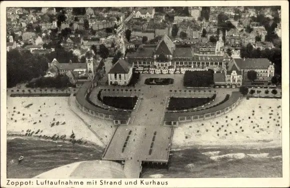 Ak Sopot Gdańsk Zoppot Danzig, Luftbild, Strand, Kurhaus