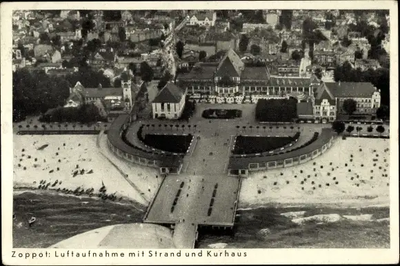 Ak Sopot Gdańsk Zoppot Danzig, Luftbild, Strand, Kurhaus