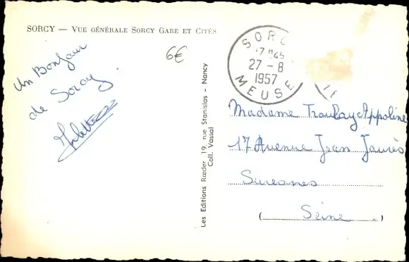 Zustand, siehe Scan, gelaufen, 1957 - ca 14 cm X 9 cm