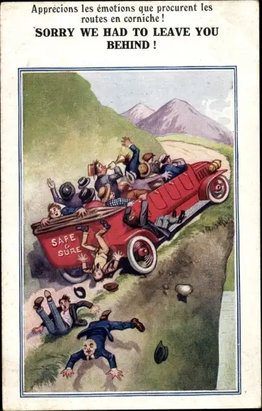 Ak Sorry we had to leave you behind, Passagiere fallen aus einem Autobus