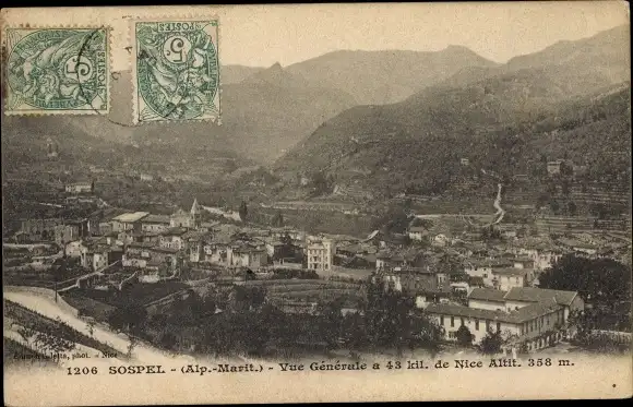Ak Sospel Alpes Maritimes, Vue générale