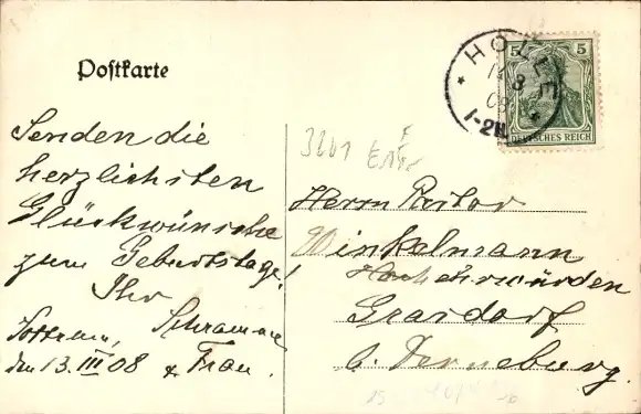 Zustand, siehe Scan, gelaufen, 1908 - ca 14 cm X 9 cm